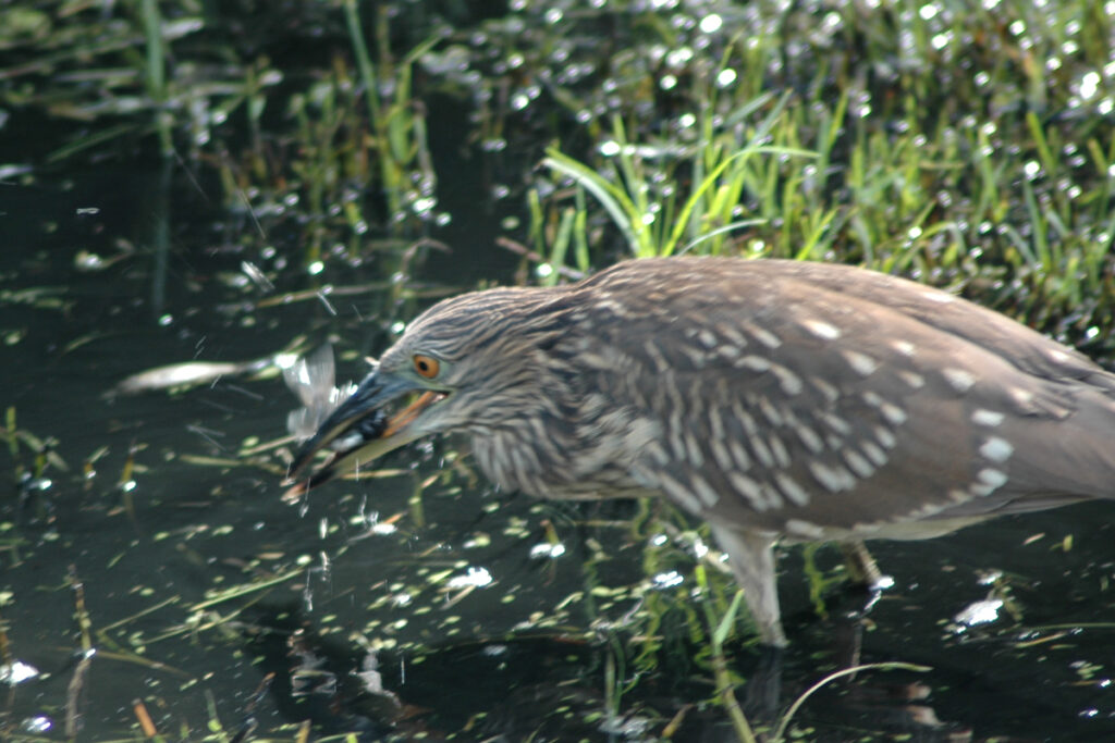 A juvenile Black-crowned Night Heron with a fish at a pond. Kauai 2004
