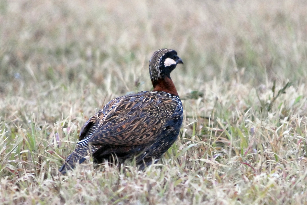 The Black Francolin is native to an area from Turkey through Northern India. They were introduced to Hawaii as a gamebird. They like dry grassy areas. This one was near Salt Pond. Kauai 2007