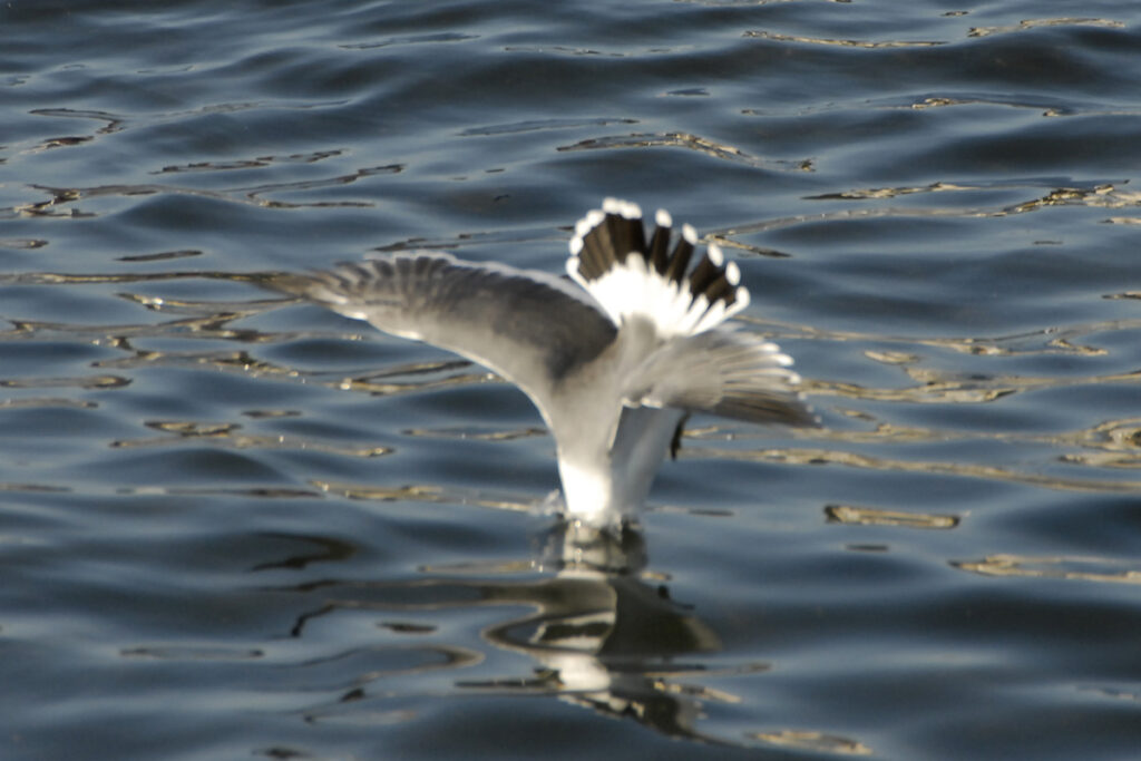 A Black-tailed Gull feeding. It looks like it is picking up fish scraps. Koshigoe 2008