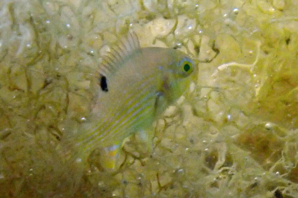 A juvenile Blackspot Tuskfish hiding in the algae. Amami 2025