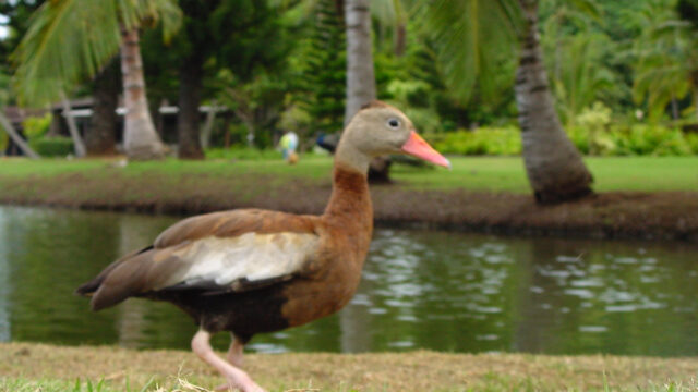 Blue-billed White-Terns were nesting in the trees in Foster Gardens. Here on is feeding its nearly fledged chick. It is passing it some sort of needlefish. Oahu 2007