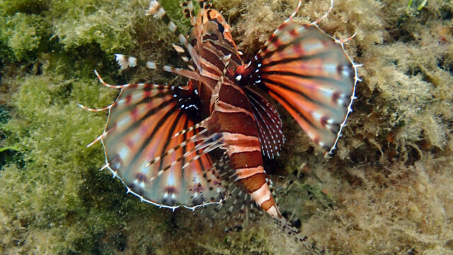 Coach-whip Trevally with a longer whip swimming over a shallow reef flat. Amami 2025