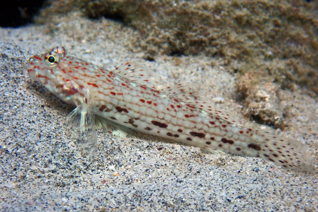 The Decorated Sandgoby lives in burrows in the sand. Amami 2025