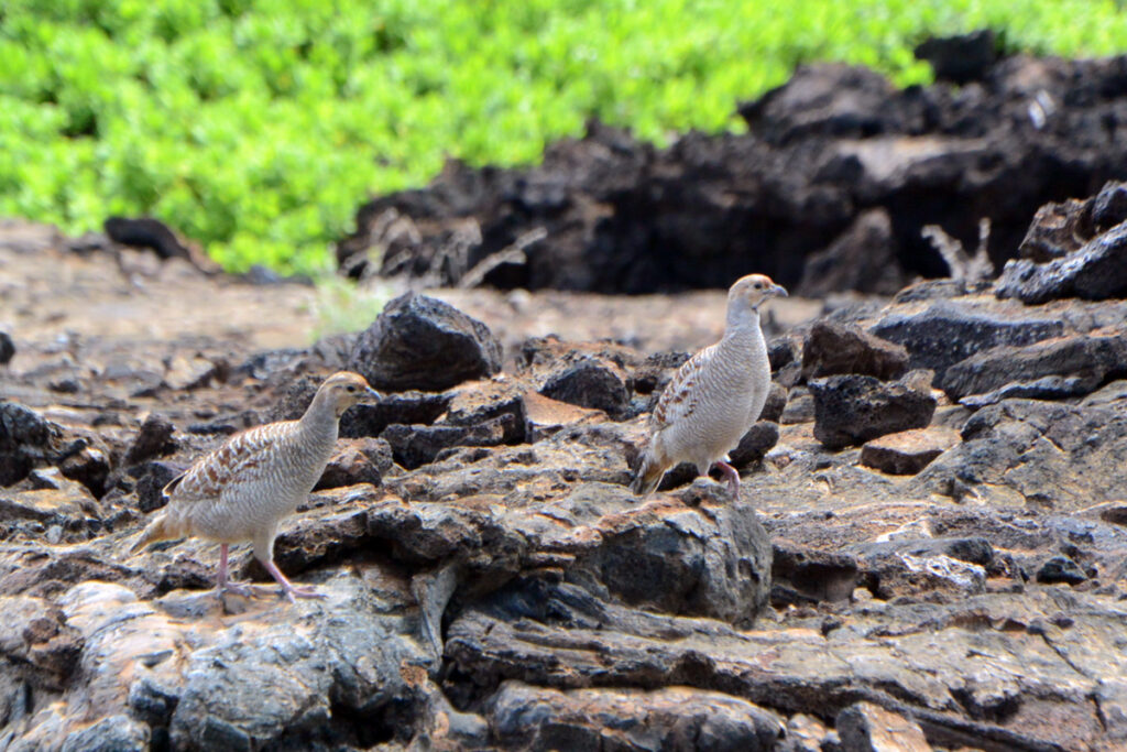 Gray Francolins near Kukio Beach. I used to see them near Anaehoomalu Beach very often, when I worked there. Hawaii 2019