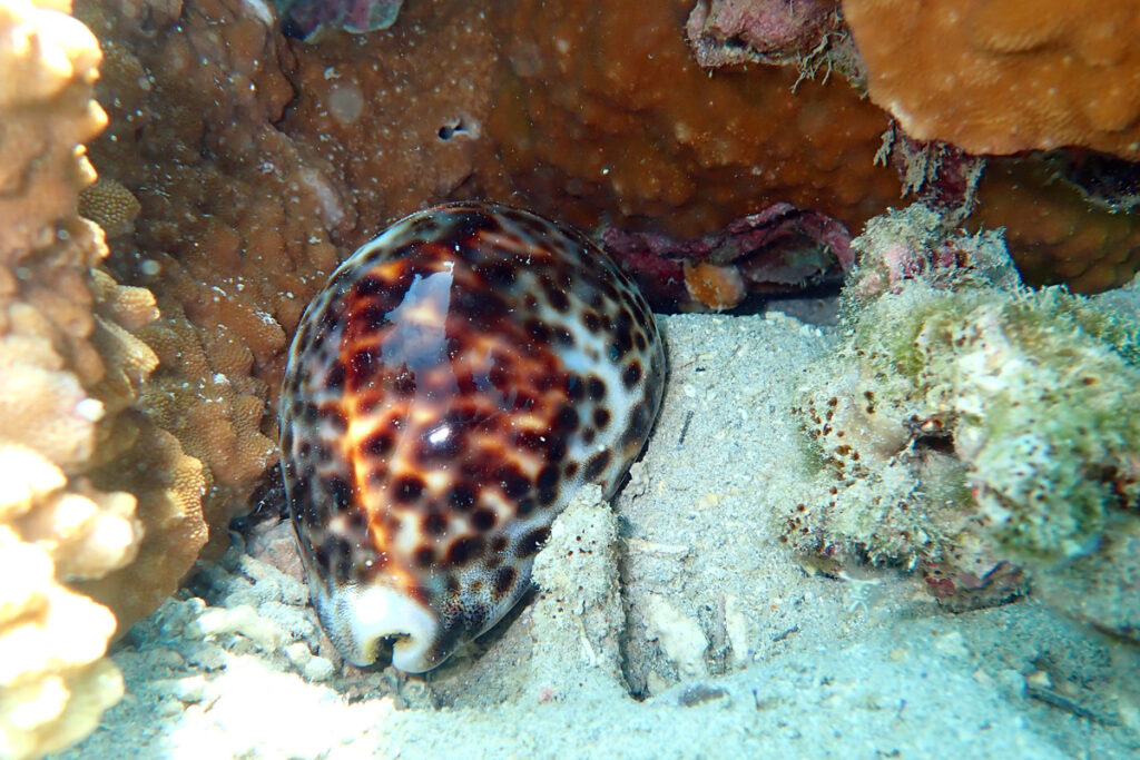 This is the first Japanese Tiger Cowry that I have found in the ocean. It was much larger than I expected. The Hawaiian Tiger cowry is said to be the largest. The Tiger Cowries in the gift shops in Hawaii are all much smaller than the local ones. I was surprised to see that this one was much larger than I expected. It was in the size range of the Hawaiian Tiger Cowries. Amami 2025