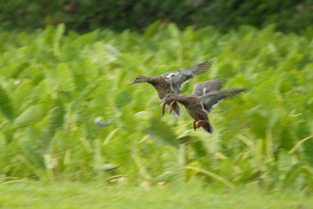 Here a pair comes in for a landing next to a taro lo’i in Hanalei. Kauai 2007