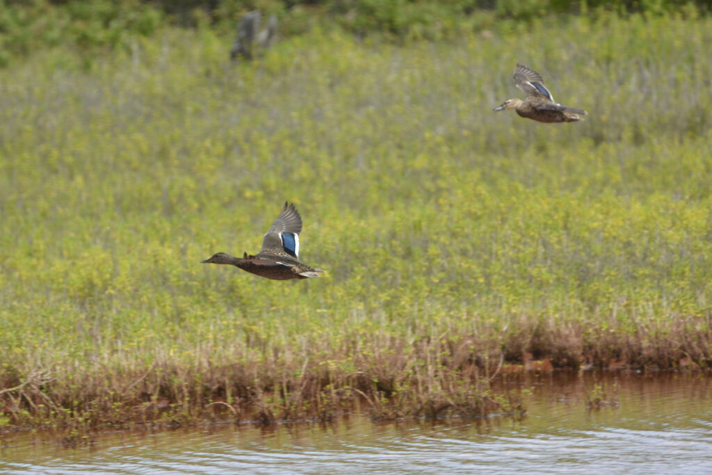 A pair of Koloa Maoli flying over Salt Pond. Kauai 2014