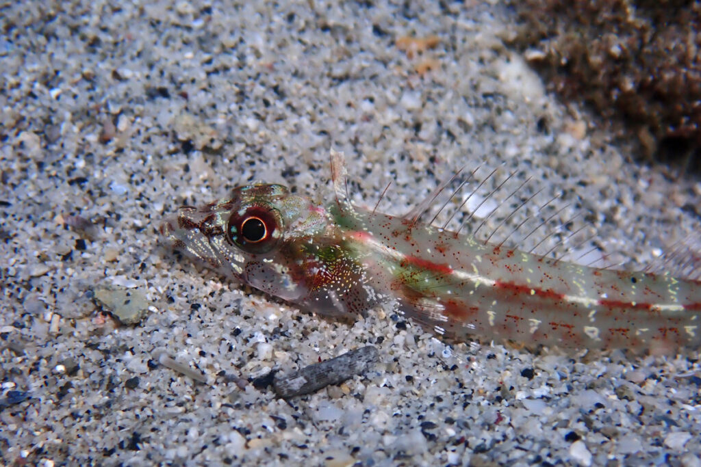 A Largemouth Triplefin can grow to almost 5 cm. Males can have a black edge to their center fin. It has a large mouth for its size at least, with a little bit of an underbite. Amami 2025