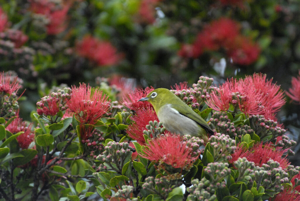 Mejiros are very common in Hawaii. Here one is in an Ohia tree. This was once the domain of the Hawaiian Honeycreepers. Kauai 2007
