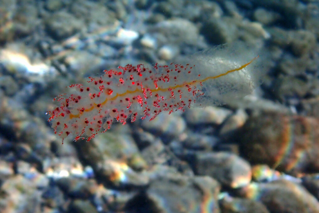 Another shot of the Red-spotted Siphonophore tentacles. They are contracted here but they can be extended a long way when feeding. I didn’t test the sting, but I hear that it is not pleasant. Most of the stuff that stings me never gets identified, so I may have felt them. Amami 2025