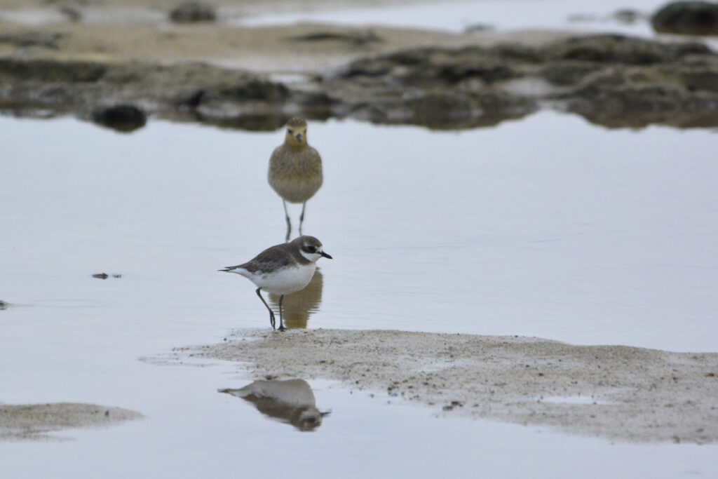 In 2023 the Lesser Sand-plover was split and renamed the Siberian Sand-Plover and the Tibetan Sand-Plover. I think that this is the Siberian Sand-Plover with a Pacific Golden Plover behind it. Amami 2025