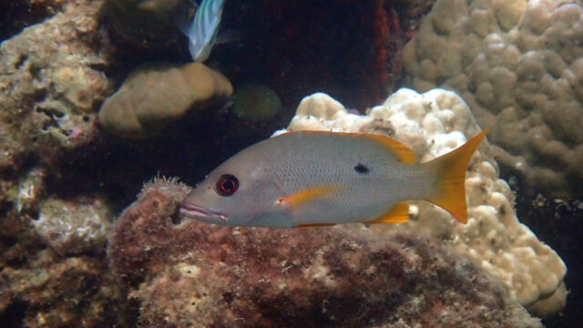 The Specked Scorpionfish hides in the branches of Pocillopora corals in the day. At night they are reddish with white blotches. They are found in Hawaii and Johnston Atoll. Kauai 2017