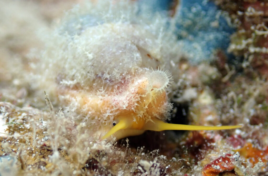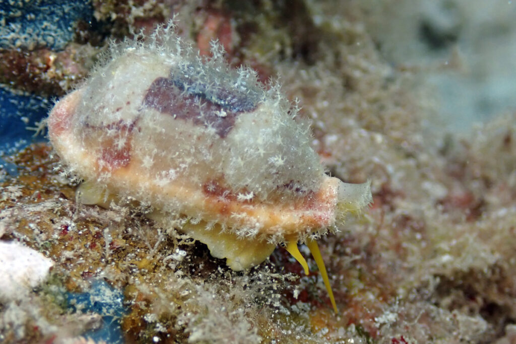 Live Stolid Cowry with mantel fully extended. Amami 2026