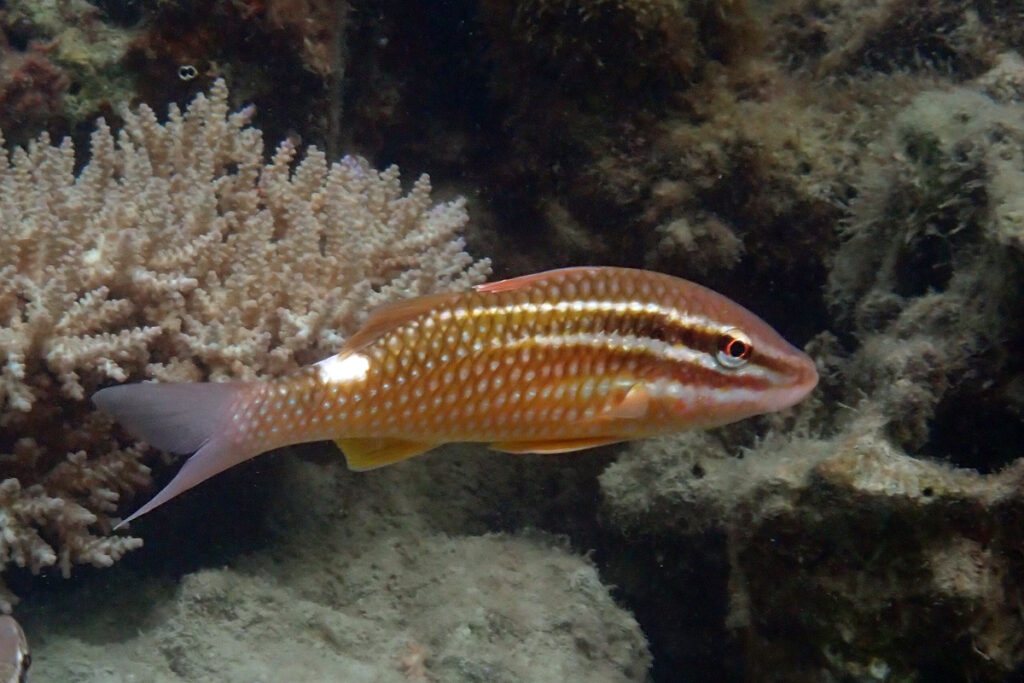 Whitesaddle Goatfish can change their coloration. This one is showing a lot of yellow. They can be paler too. Amami 2025