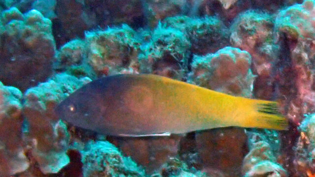 Another view of the same juvenile Yellow-edged Lyretail. The adult also has a stripe on the middle of the forehead. Amami 2025