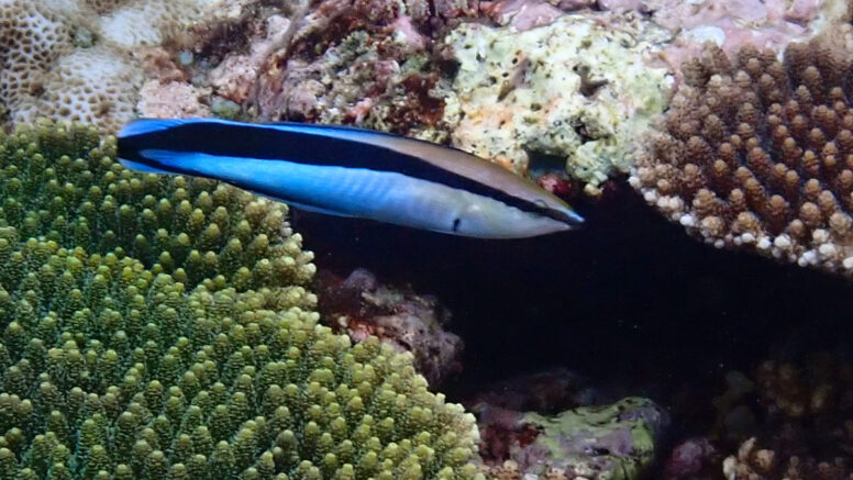 Bluestriped Cleaner Wrasse – ホンソメワケベラ Bluestriped Cleaner Wrasse (Labroides dimidiatus) ホンソメワケベラ - size 12cmJuvenile Bluestriped Cleaner W... 2024.03.09