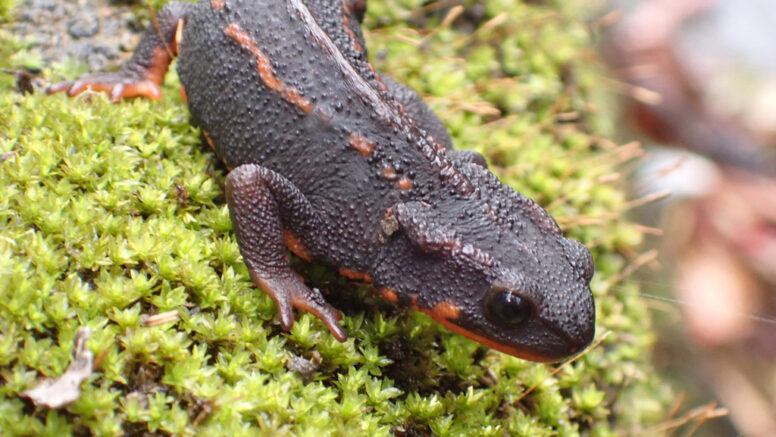 Sword-tailed Newt シリケンイモリ Sword-tailed newt (Cynops ensicauda) シリケンイモリ (size 18cm)A Sword-tailed newt on moss. The newts live ... 2024.11.21